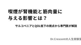 喫煙は腎機能低下だけでなく、筋肉量減少(サルコペニア)を通じて生活の質(QOL)にも影響します。健診で腎機能が気になり始めた方向けに、腎臓専門医が喫煙の本当の影響を解説します。