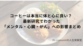 コーヒーはうつ病リスク低下や心血管疾患・がんの予防と関連し、メンタル改善の可能性も。一方で不安悪化や睡眠への影響も。医師が最新エビデンスを基に「適量」「飲むタイミング」「カフェイン感受性」まで徹底解説します。